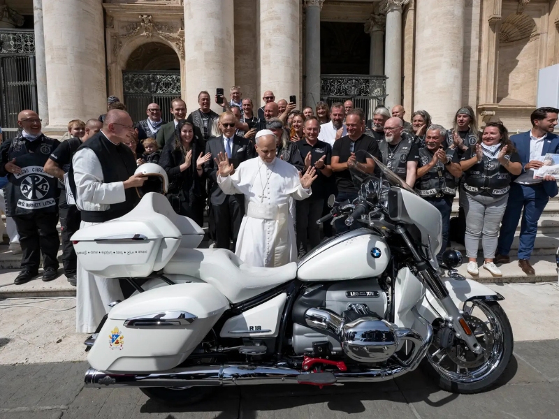The story of this motorcycle begins not on a factory floor, but with a simple, profound idea: to create a unique bike for a good cause. Born from a collaboration between BMW Motorrad and the Jesus Bikers, this custom-built R 18 Transcontinental embarked on a "Peace Ride" from Germany to the Vatican. It was here, on the steps of St. Peter's Basilica, that the bike was presented to His Holiness Pope Leo XIV, who personally signed its fuel tank and offered his blessing.