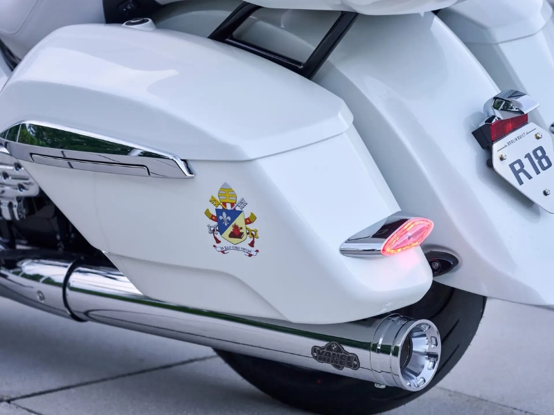 Custom-built by German workshop Motorrad Witzel, the bike's design reflects a meticulous attention to detail. It is finished in a specially created shade of Witzel Mystikweiß Brillant, a brilliant mother-of-pearl white inspired by the Popemobile. It is adorned with numerous papal features, including a tag dedicated to Pope Leo XIV on the engine block, and a "peace" script on the top box. Beneath the custom paint and unique features lies a modern cruiser, a powerful machine with a traditional 1,802-cc air-cooled boxer engine.