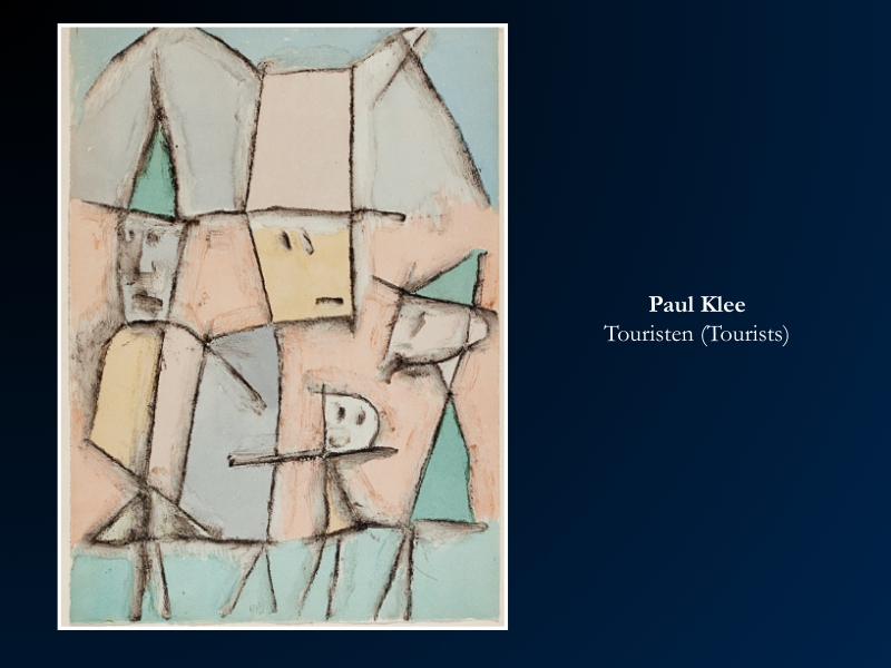 While Picasso explored the family, Paul Klee explored the essence of movement and observation. His 1937 work, Touristen, is a study in Klee’s late-period mastery.