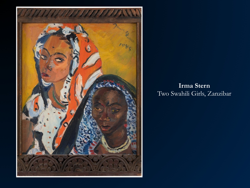 Irma Stern’s Two Swahili Girls, Zanzibar (1945) represents the peak of her mature style. This work was created during her second expedition to the island, a trip that transformed her from an observer into a visceral Expressionist.